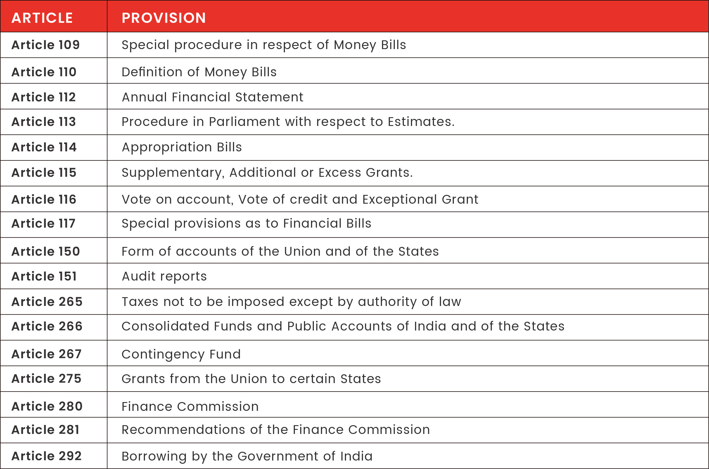 IMPORTANT CONSTITUTIONAL PROVISIONS RELATED TO BUDGET