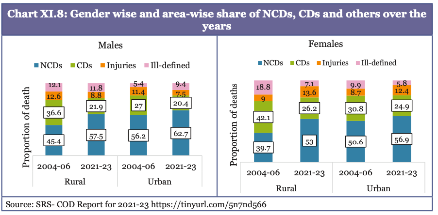 - However, it faces a double burden of persistent communicable diseases (CDs) (e.g., tuberculosis, vector-borne infections) coexisting with rapidly rising NCDs like cardiovascular diseases, diabetes, and cancers.