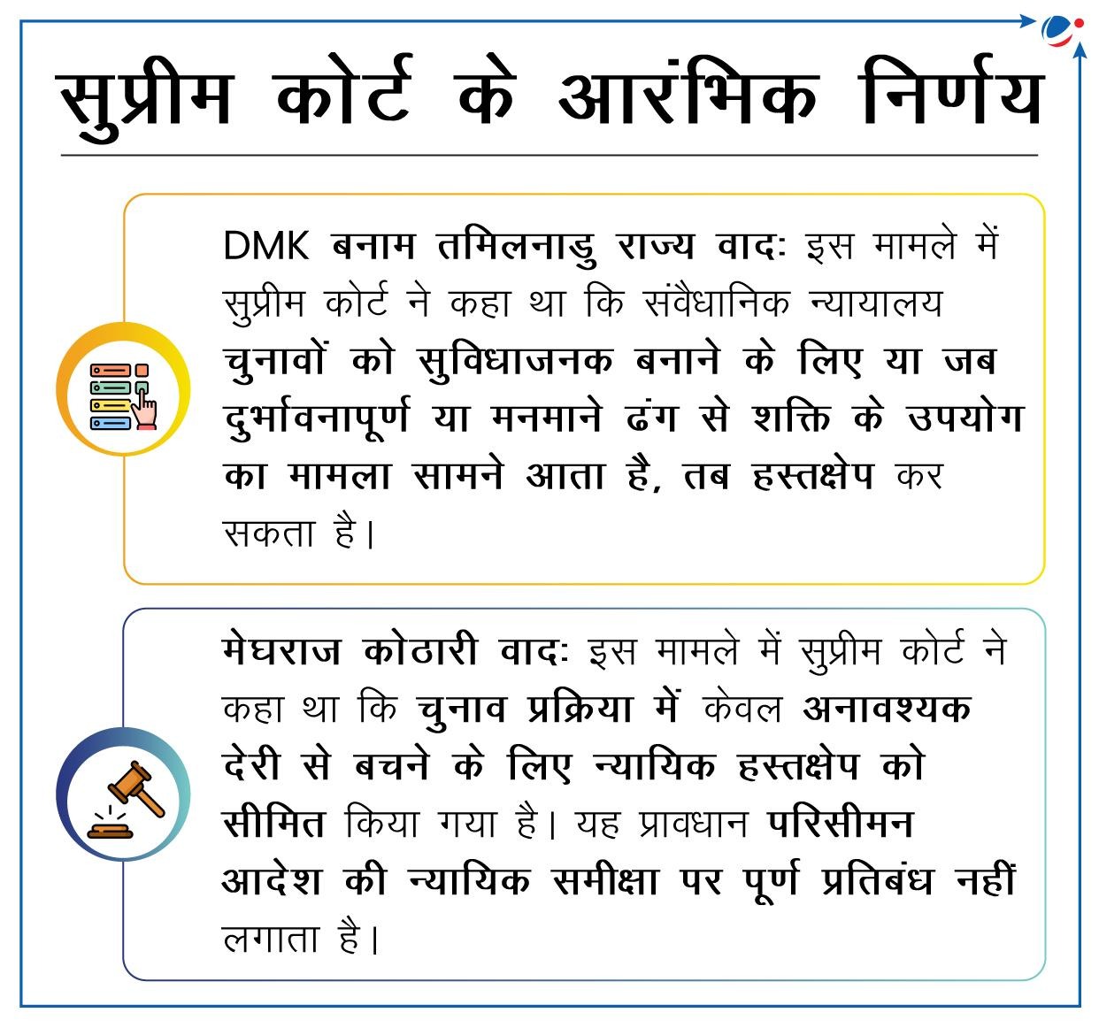 - इससे पहले गुजरात हाई कोर्ट ने परिसीमन कार्य को चुनौती देने वाली याचिका को खारिज कर दिया था। हाई कोर्ट ने संविधान के अनुच्छेद 329(a) का संज्ञान लेते हुए कहा था कि यह अनुच्छेद चुनाव संबंधी मामलों में न्यायालय के हस्तक्षेप को रोकता है।