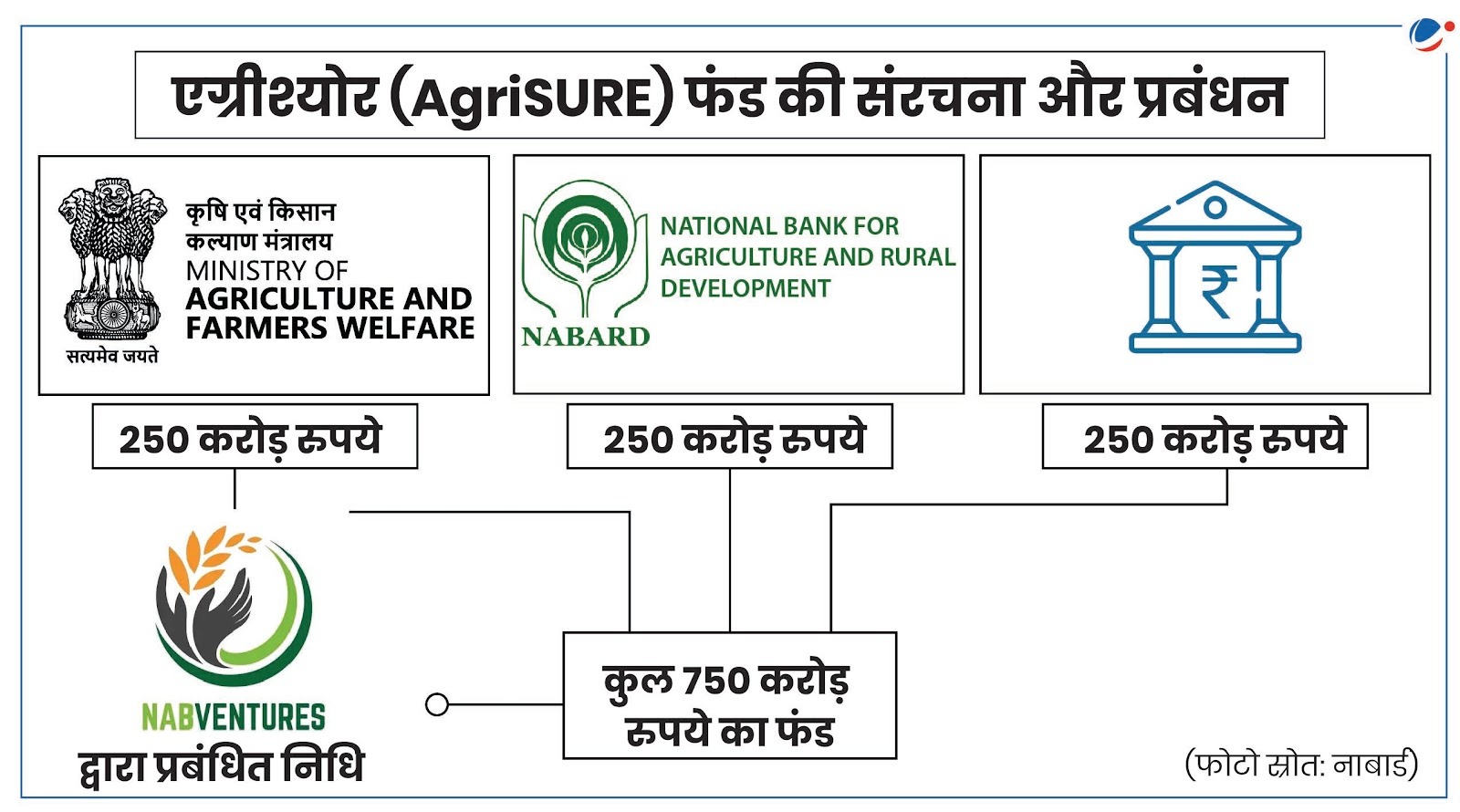 हाल ही में, कृषि एवं किसान कल्याण तथा ग्रामीण विकास मंत्री ने एग्रीश्योर (स्टार्ट-अप्स एवं ग्रामीण उद्यमों के लिए कृषि कोष) योजना शुरू की है।