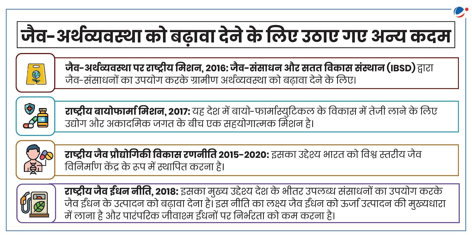 - बायो-इकोनॉमी या जैव अर्थव्यवस्था 2014 में 10 बिलियन अमेरिकी डॉलर से बढ़कर 2024 में 130 बिलियन अमेरिकी डॉलर से अधिक हो जाएगी।