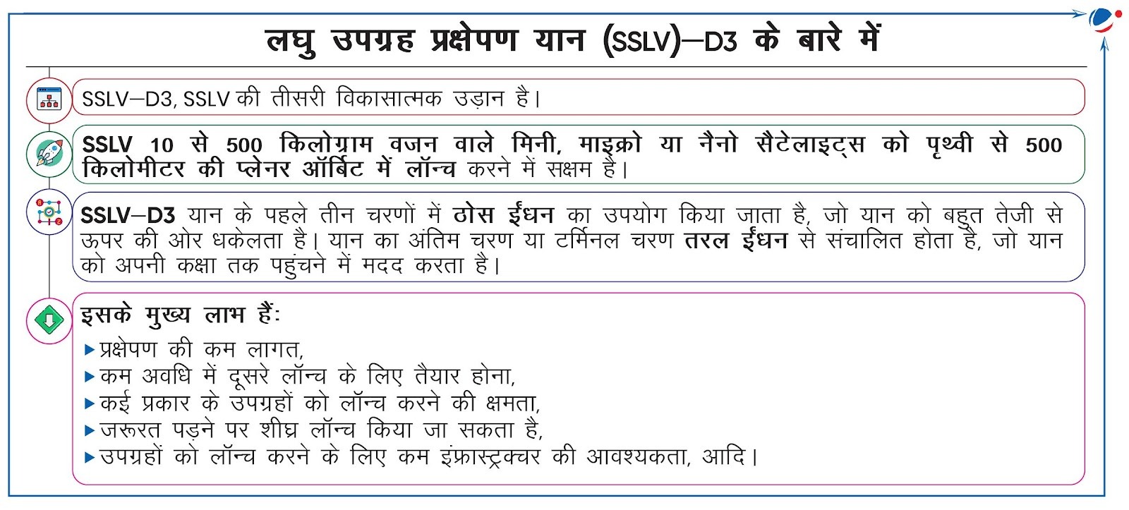 - इसके अलावा, SSLV-D3 प्रक्षेपण यान से SR-0 डेमोसैट भी लॉन्च किया गया। इसे स्पेस किड्ज इंडिया ने तैयार किया है।
