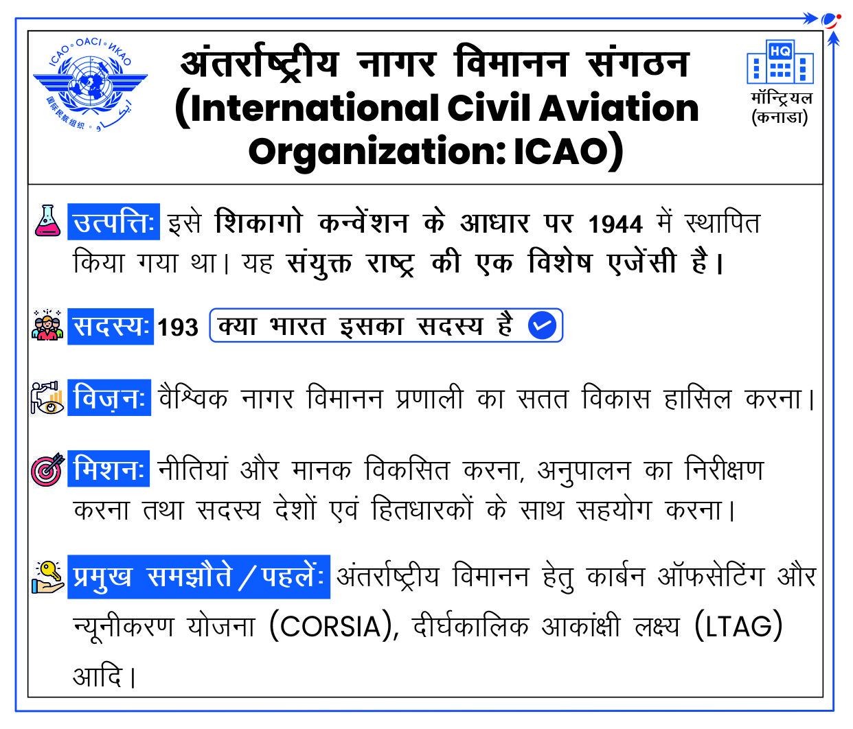 • विमानन पर्यावरण संरक्षण: विमानन के उत्सर्जन और अन्य पर्यावरणीय प्रभावों को कम करना।