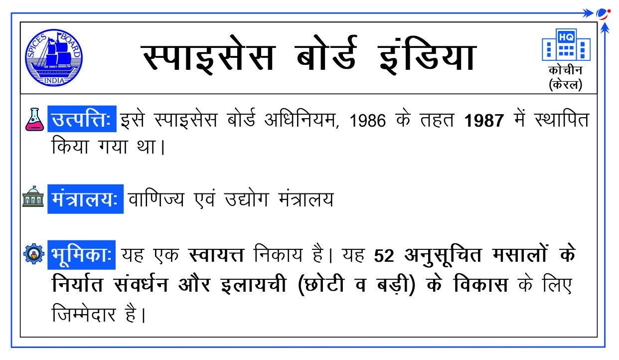 हाल ही में, केंद्रीय वाणिज्य एवं उद्योग मंत्रालय ने SPICED योजना को मंजूरी प्रदान की
