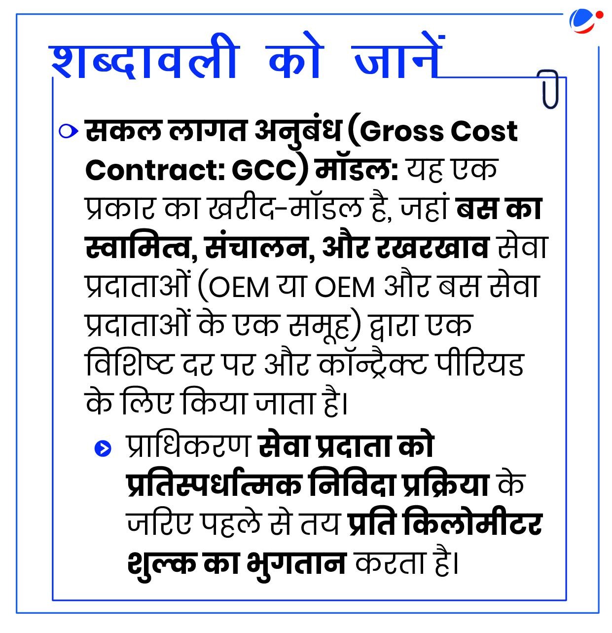 - ई-बसों के लिए सहायता राज्य/ शहर परिवहन उपक्रमों (STUs) के माध्यम से परिचालन व्यय (OPEX)/ सकल लागत अनुबंध (GCC) मॉडल पर प्रदान की जाएगी।
