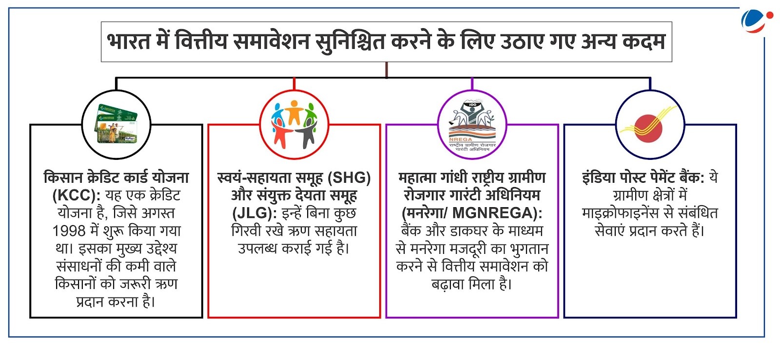 - विनियामकीय बाधाएं: नो-योर-कस्टमर (KYC) का सख्ती से पालन करने की अनिवार्यता जैसी विनियामकीय चुनौतियां, निम्न आय वाले व्यक्तियों के लिए वित्तीय सेवाओं का लाभ उठाने में समस्या पैदा करती हैं।