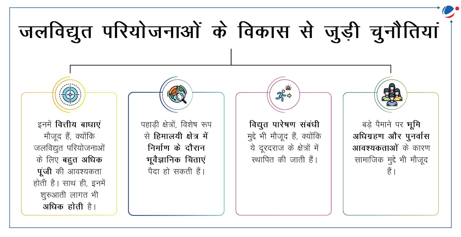 - केंद्रीय मंत्रिमंडल ने जलविद्युत परियोजनाओं (HEP) के त्वरित विकास और दूरदराज एवं पहाड़ी परियोजना स्थलों में अवसंरचना में सुधार हेतु योजना में संशोधन को मंजूरी दी है।