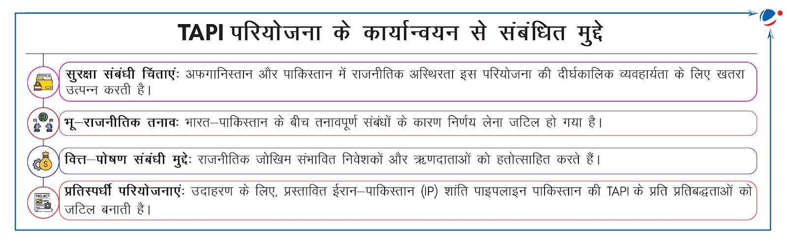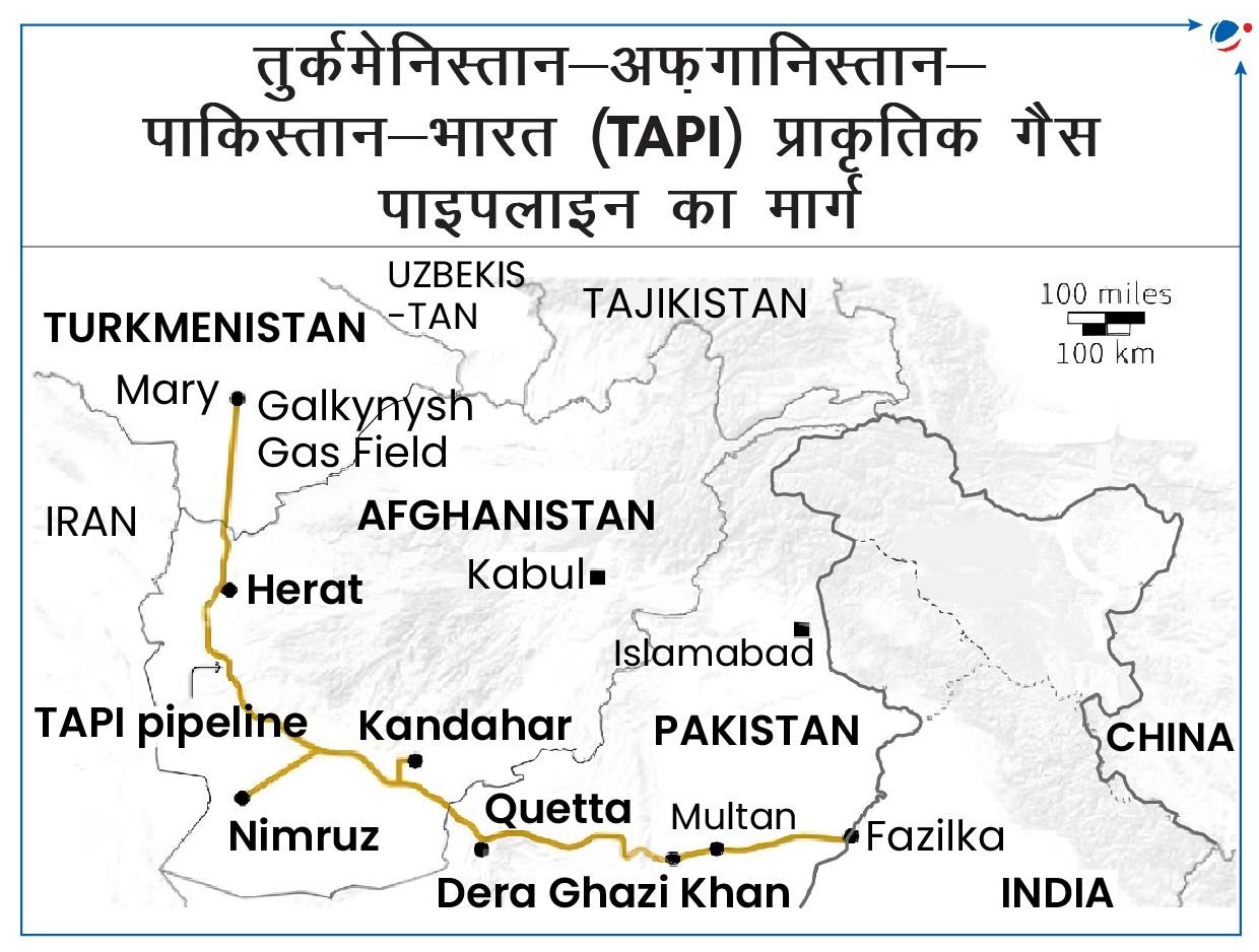 - यह तुर्कमेनिस्तान से अफगानिस्तान, पाकिस्तान और भारत तक प्रस्तावित 1,814 किलोमीटर तक की पाइपलाइन है।