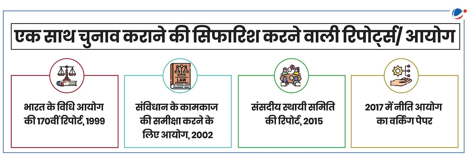 - एक साथ चुनाव का आशय यह नहीं है कि संपूर्ण देश में इन सभी चुनावों के लिए एक ही दिन मतदान हो।