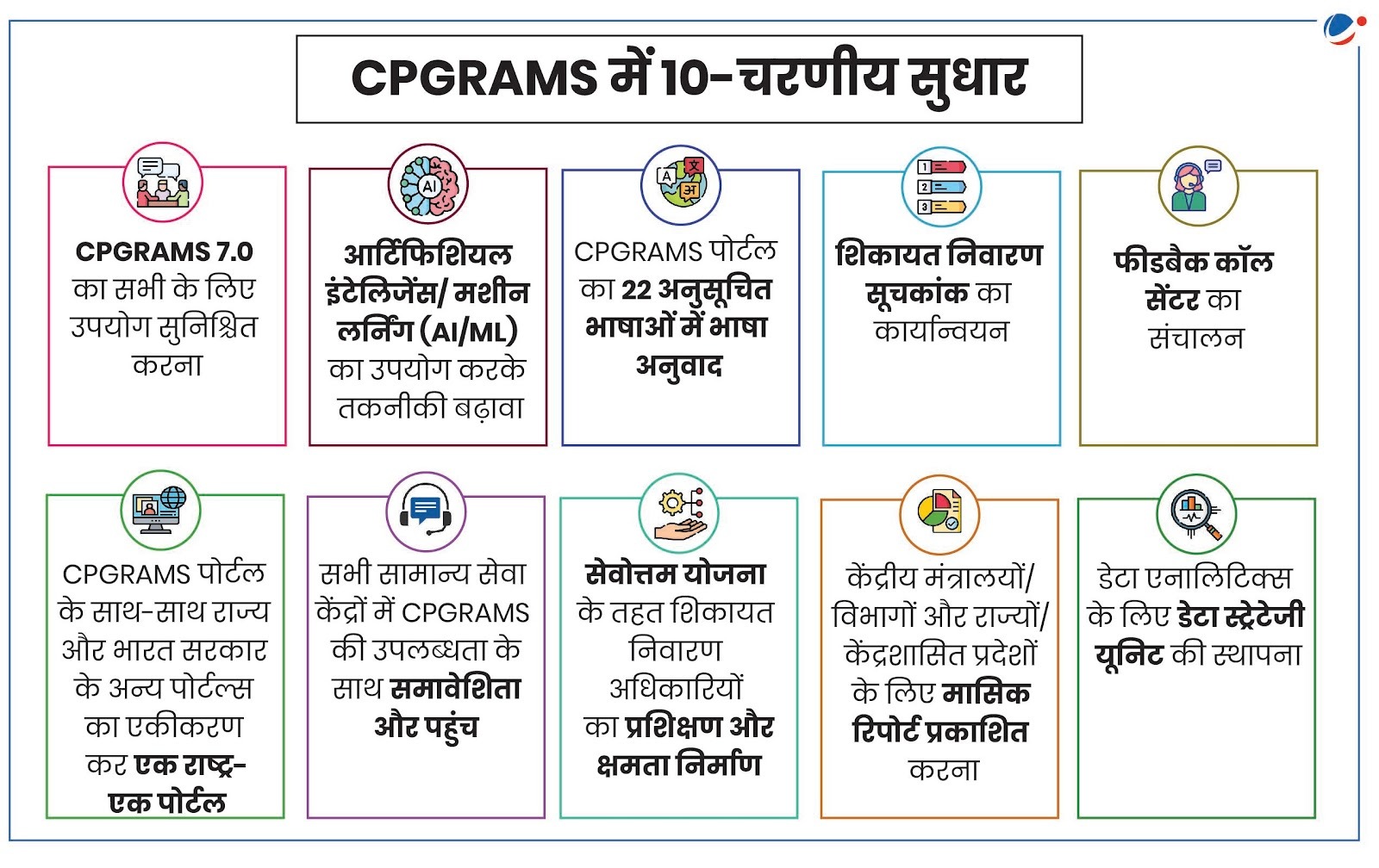 - गौरतलब है कि सरकार ने 2022 में CPGRAMS के तहत 10-चरणीय सुधार लागू किए थे।