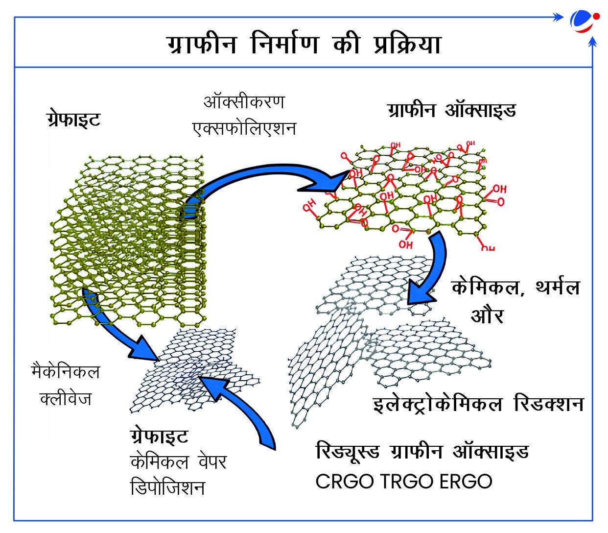 - ग्राफीन शीट के संश्लेषण के तरीके: इसमें केमिकल वेपर डिपोजिशन (CVD), प्राकृतिक ग्रेफाइट का विखंडन, मैकेनिकल एक्सफोलिएशन, हाइड्रोजन आर्क डिस्चार्ज, आदि शामिल है।