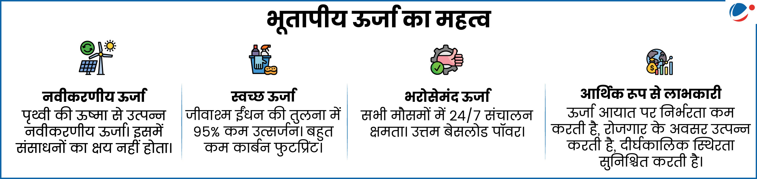 - स्वदेशी भू-तापीय प्रौद्योगिकियों को प्राथमिकता दी जाएगी और स्थानीय इनोवेशन को बढ़ावा दिया जाएगा।
