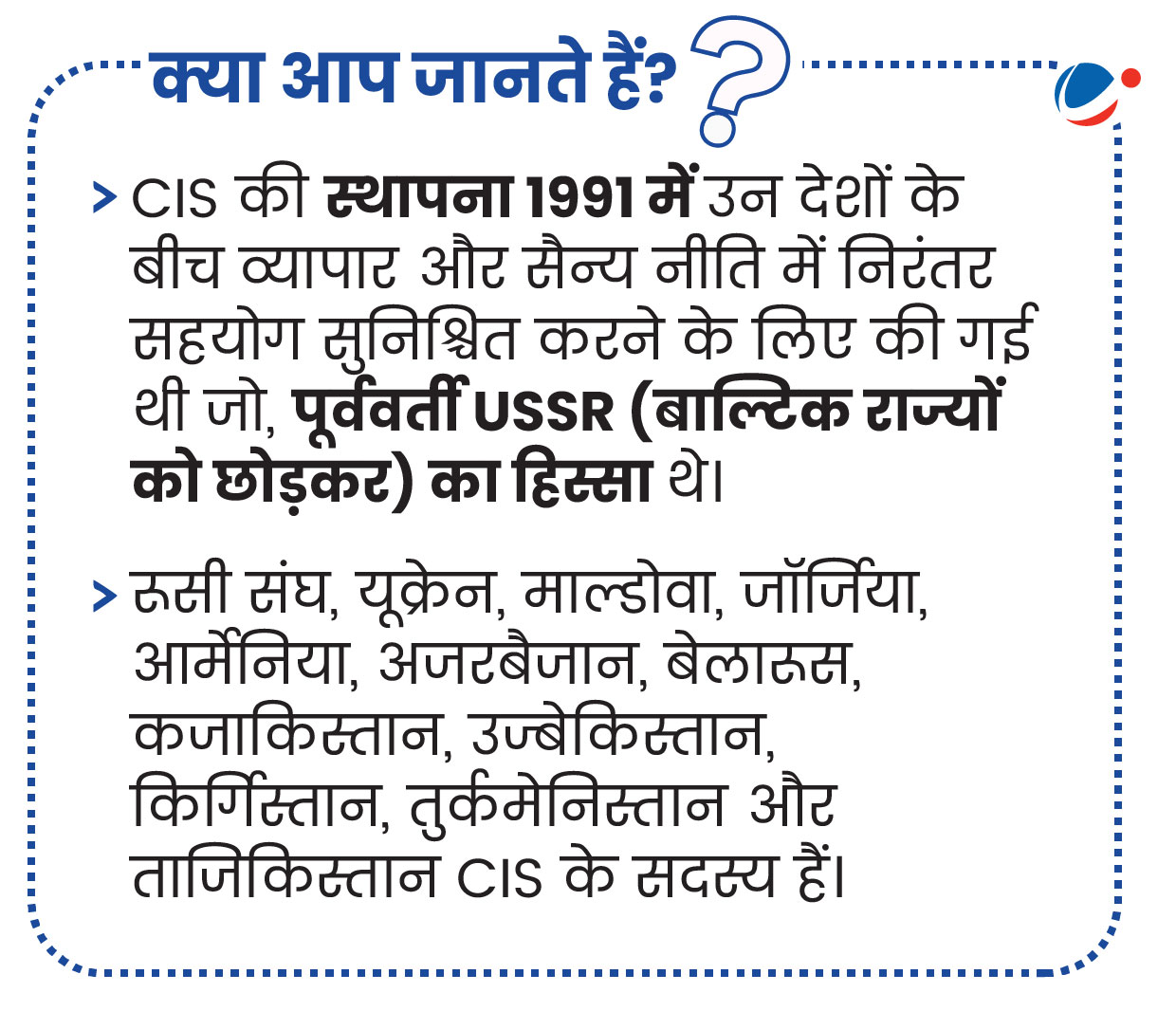 - SCO को स्वतंत्र राष्ट्रों के राष्ट्रमंडल (CIS) में पर्यवेक्षक का दर्जा दिया गया।