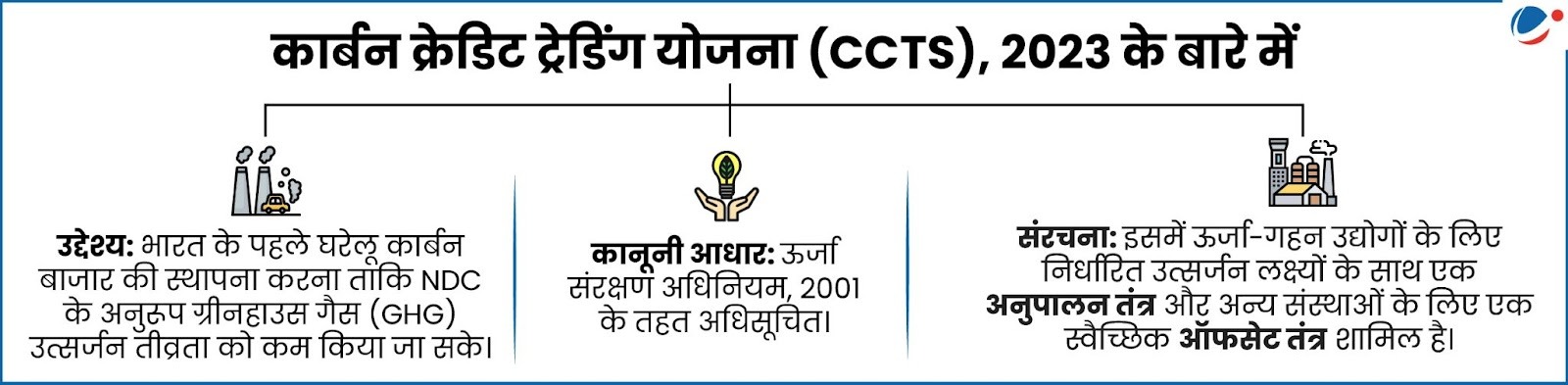 - ये नियम CCTS, 2023 के तहत देश के घरेलू कार्बन बाजार को परिचालन में लाने में सहयोग करेंगे।