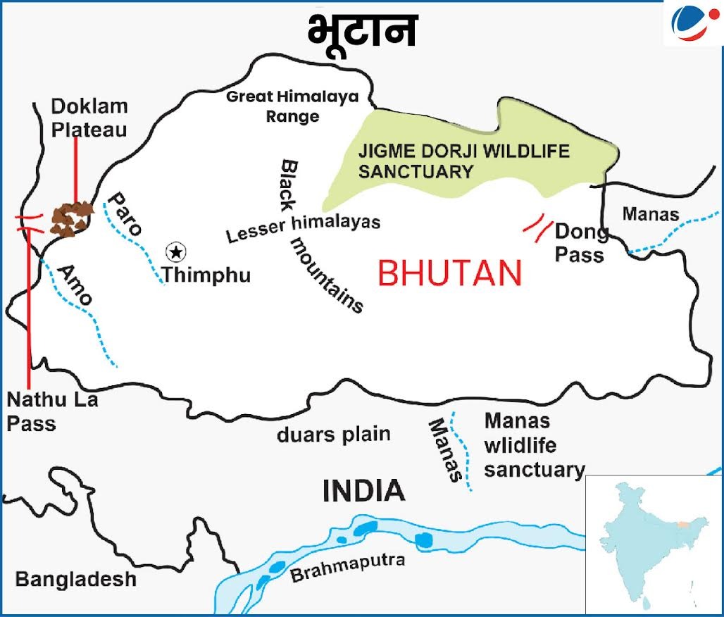 - रणनीतिक बफर एवं सुरक्षा: भूटान की भौगोलिक अवस्थिति भारत और चीन के बीच एक बफर (मध्यवर्ती क्षेत्र) के रूप में कार्य करती है। भूटान की पश्चिमी सीमा (डोकलाम) भारत के सिलीगुड़ी कॉरिडोर की सुरक्षा सुनिश्चित करने के लिए अत्यंत महत्वपूर्ण है।