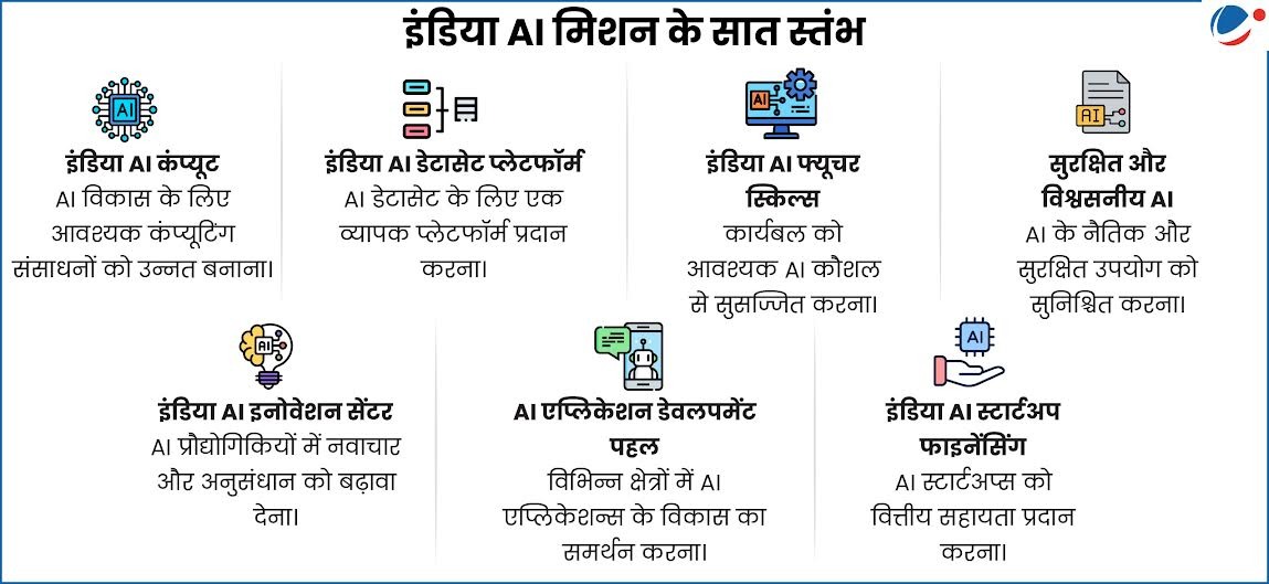 - राष्ट्रीय AI रणनीति (NSAI): नीति आयोग की #AIforAll रणनीति स्वास्थ्य-देखभाल सेवा, कृषि और शिक्षा जैसे महत्वपूर्ण क्षेत्रकों में एआई के उपयोग पर ध्यान केंद्रित करती है।