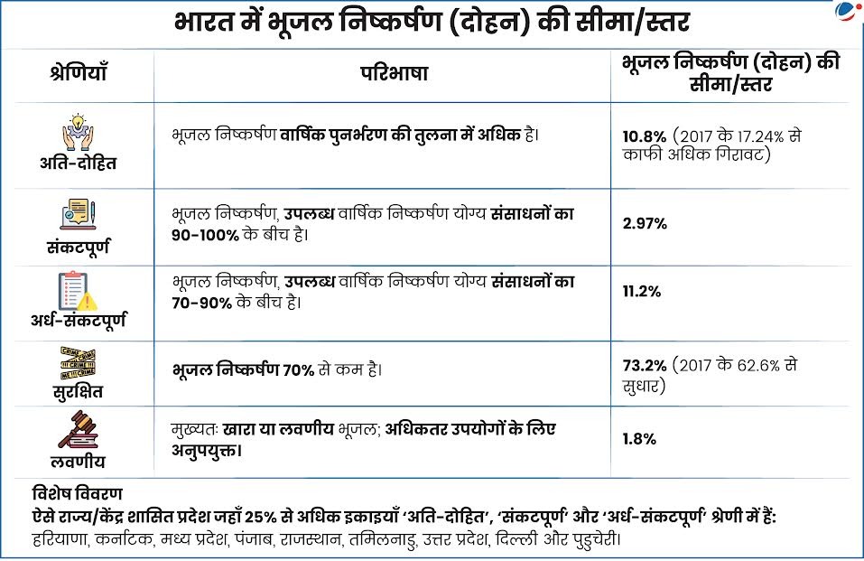 - कुल वार्षिक भौमजल दोहन (2025): आंशिक रूप से बढ़कर 247.22 BCM हो गया है।