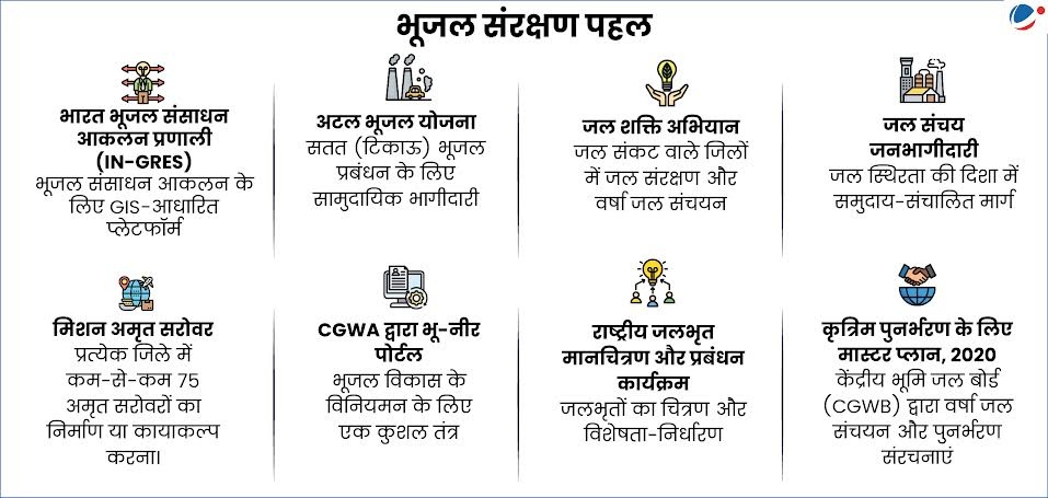 - जल-उपयोग दक्षता वाली कृषि: जैसे कि फसल विविधीकरण, परिशुद्ध कृषि (Precision Agriculture), शून्य जुताई (ज़ीरो टिलेज) को बढ़ावा देना।