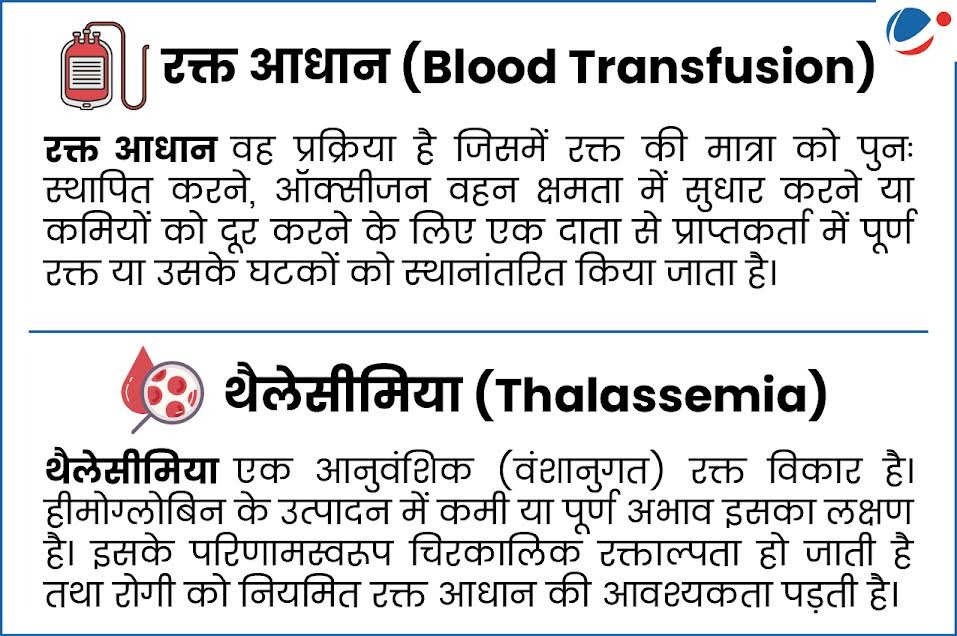 उदाहरण: हाल ही में मध्य प्रदेश के सतना जिले में रक्त आधान के माध्यम सेथैलेसीमिया से पीड़ित 6बच्चे ह्यूमन इम्युनोडेफिशिएंसी वायरस (HIV) से संक्रमित हो गए थे।