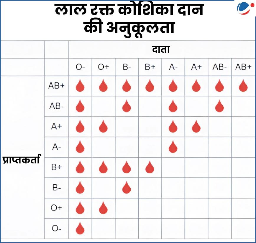 O- रक्त समूह: इसे लाल रक्त कोशिकाओं के लिए "सार्वभौमिक दाता" माना जाता है क्योंकि इसकी लाल रक्त कोशिकाओं में A, B और Rh (D) प्रतिजन का अभाव होता है। इसका अर्थ है कि यह किसी भी अन्य रक्त समूह के प्राप्तकर्ता में प्रतिरक्षा प्रतिक्रिया उत्पन्न नहीं करेगा।