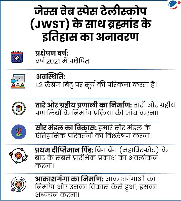• ब्रह्मांड की संरचना: ब्रह्मांड में सामान्य या दृश्यमान पदार्थ (5%), डार्क मैटर (27%) और डार्क एनर्जी (68%) शामिल हैं।