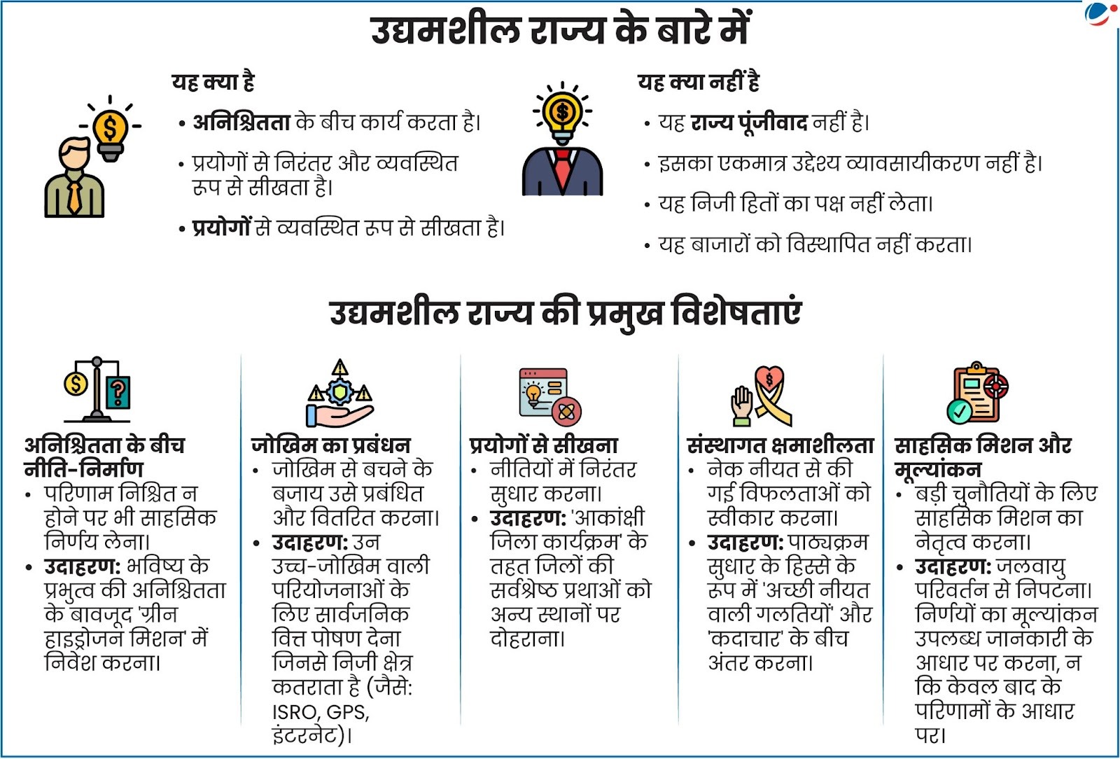 आर्थिक सर्वेक्षण 2025–26 में हाल ही में भारत को 'उद्यमशील राज्य' की ओर बढ़ने की आवश्यकता बताई गई है। यह अवधारणा अर्थशास्त्री मारियाना माज़ुकाटो से ली गई है।