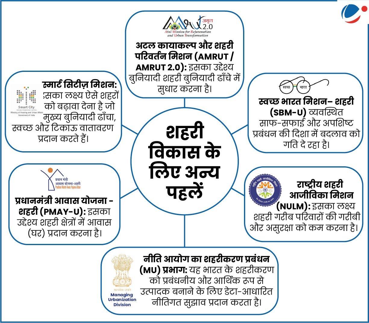 - अवसंरचना आधारित विकास: शहरी अवसंरचना में निवेश प्रतिक्रियात्मक उपायों (समस्या उत्पन्न होने के बाद) की जगह पहले से योजना बनाने में करनी चाहिए।