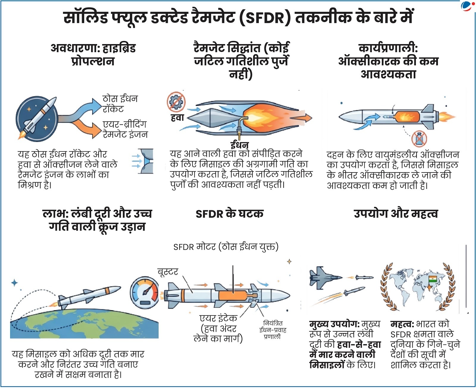 रक्षा अनुसंधान एवं विकास (DRDO) ने ओडिशा के चांदीपुर स्थित समन्वित परीक्षण केंद्र (ITR) से ठोस ईंधन डक्टेड रैमजेट (SFDR) प्रौद्योगिकी का सफल परीक्षण प्रदर्शन किया।