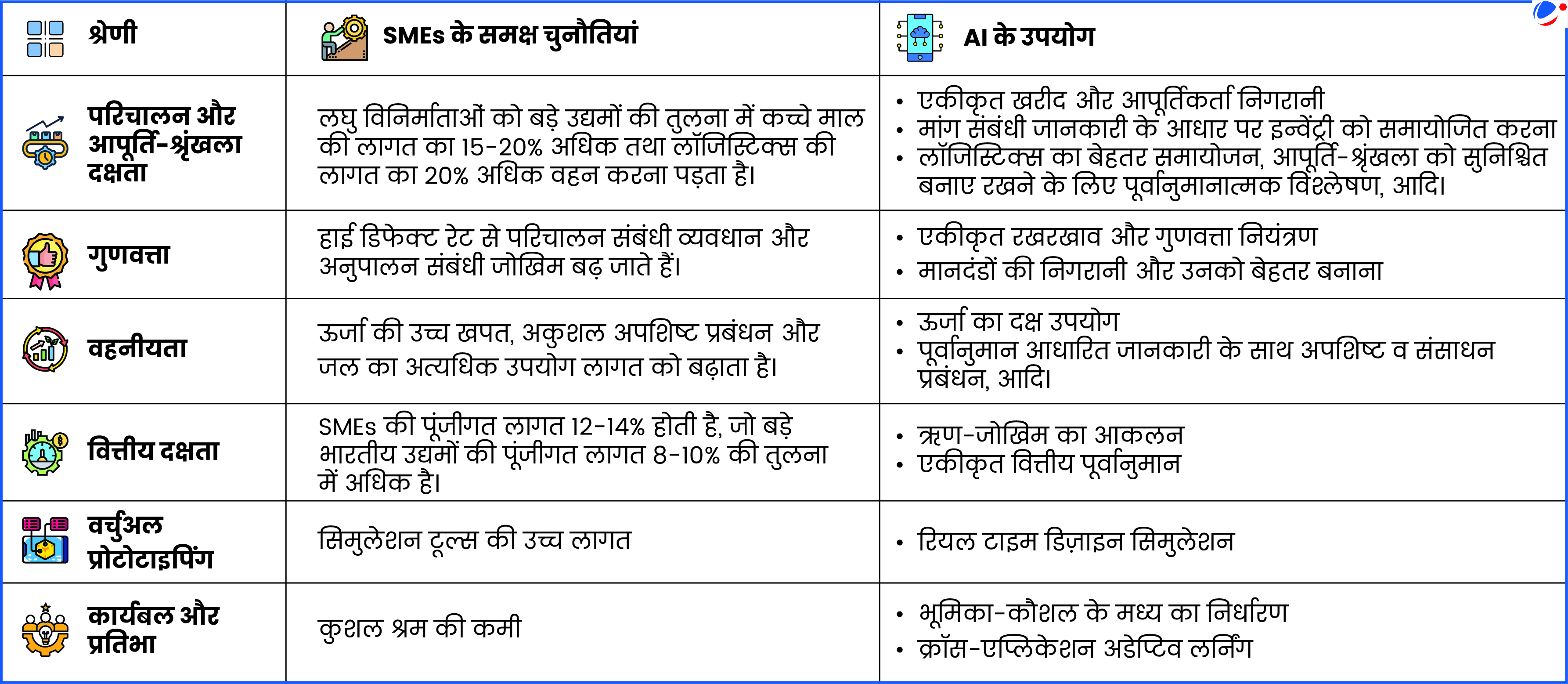 यह पुस्तिका एक रणनीतिक रोडमैप प्रदान करती है। इसका उद्देश्य भारत के लघु और मध्यम उद्यमों (SMEs) के लिए कृत्रिम बुद्धिमत्ता (AI) को सुलभ बनाकर उनकी उत्पादकता, ऋण तक पहुंच और बाजार में विस्तार से जुड़ी चुनौतियों का समाधान करने में मदद करना है।