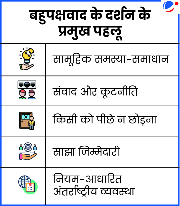 - बहुपक्षवाद: साझी समस्याओं के समाधान के लिए व्यक्तिगत क्षमता से परे कम-से-कम तीन पक्षों के बीच समन्वित कार्रवाई बहुपक्षवाद कहलाती है।