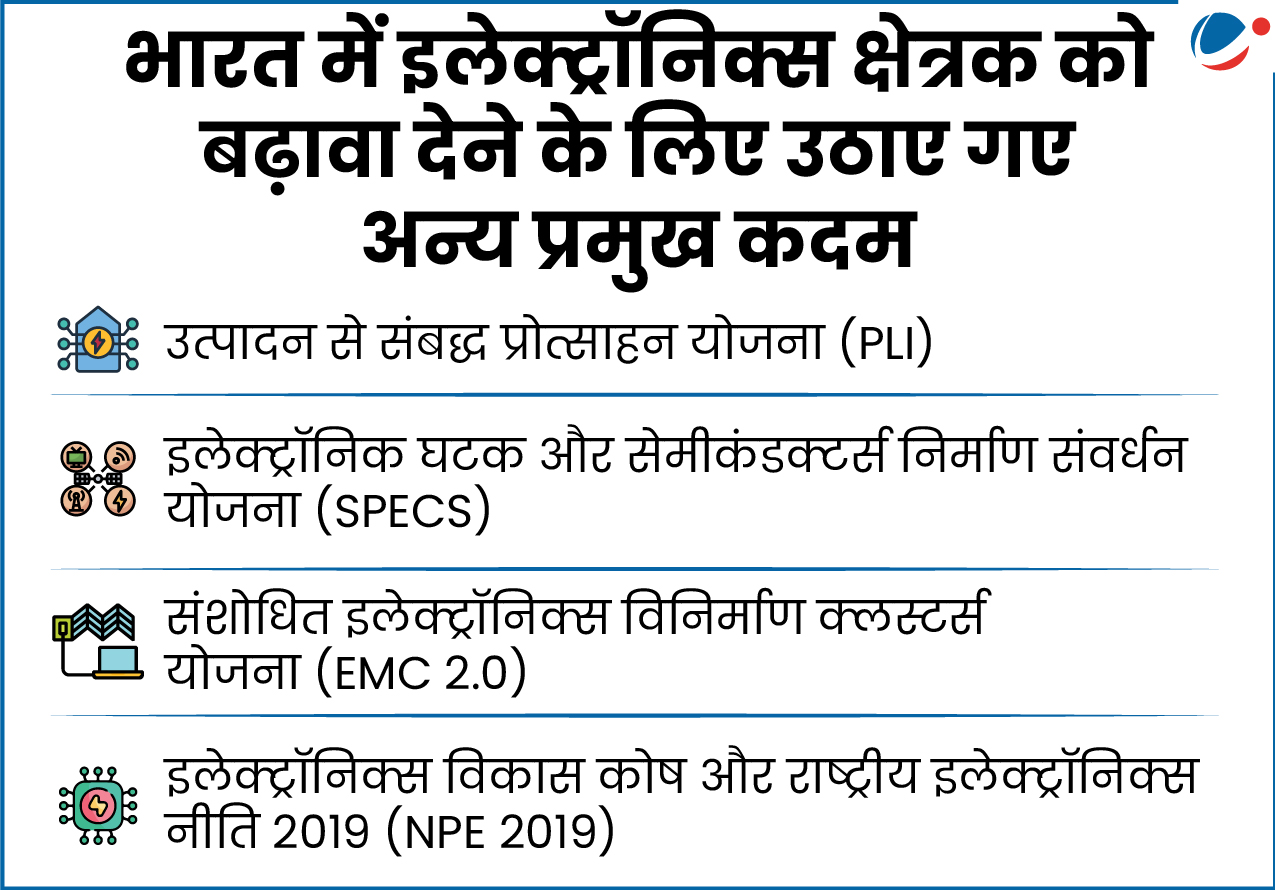 - भारत को वैश्विक इलेक्ट्रॉनिक्स व्यापार में एक अग्रणी देश के रूप में स्थापित करना है।