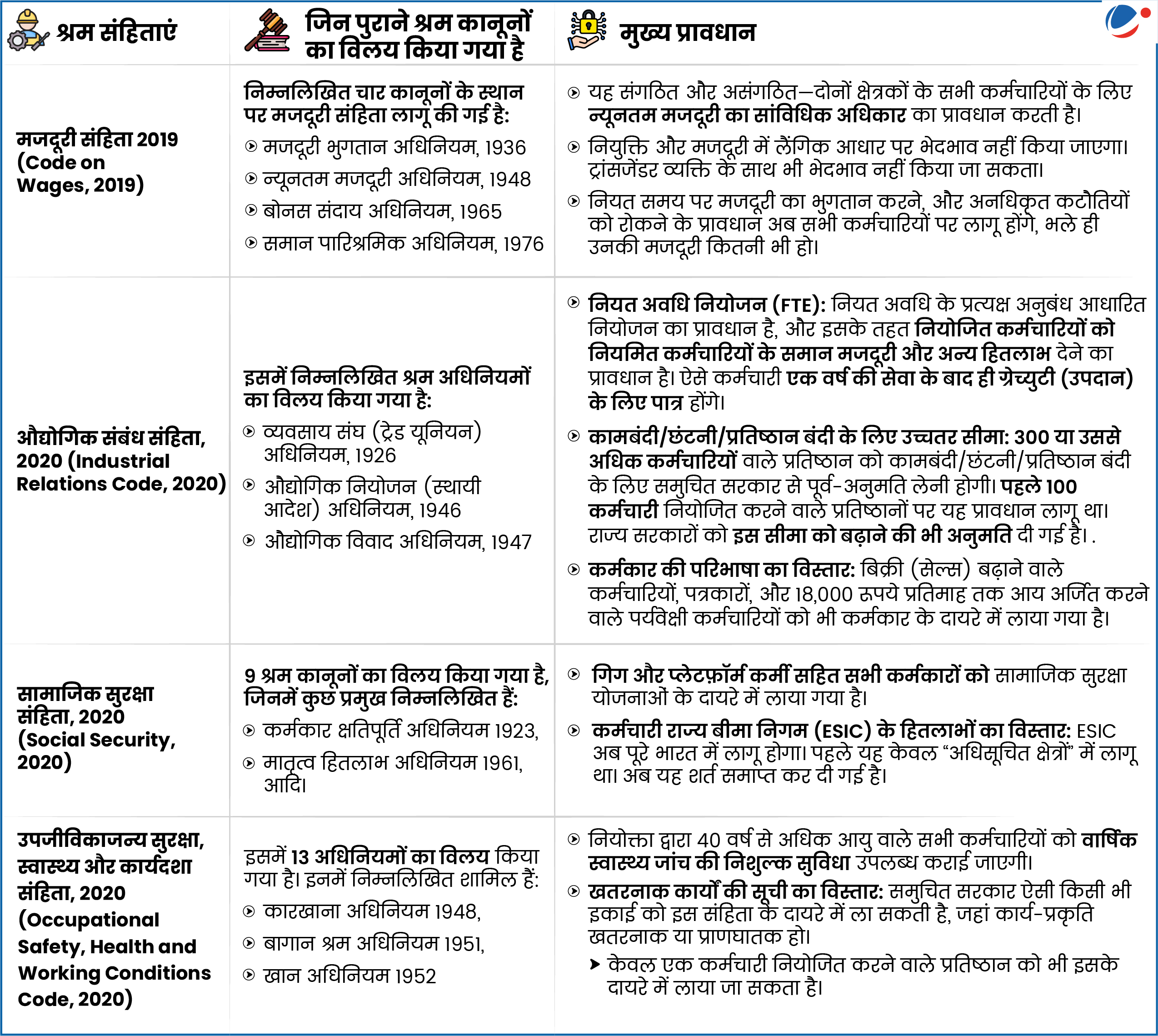 - इन सुधारों के माध्यम से श्रम संहिताओं के अनुपालन को आसान बनाया गया है और पुराने प्रावधानों को आधुनिक स्वरूप दिया गया है।
