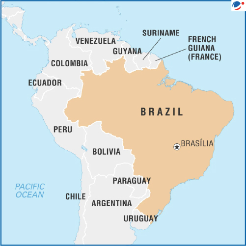 - सीमाएं: यह अटलांटिक महासागर के किनारे पर स्थित है। चिली और इक्वाडोर को छोड़कर दक्षिण अमेरिका के सभी देशों के साथ इसकी सीमा लगती है।