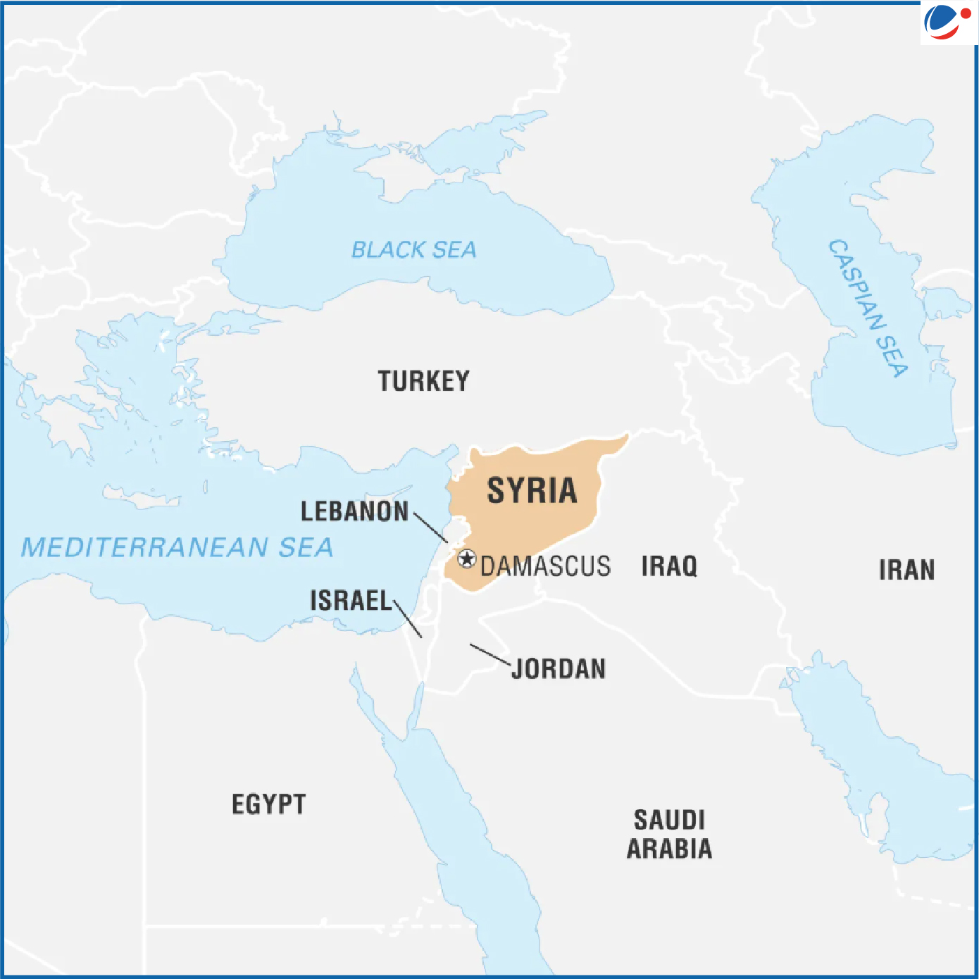 - सीमावर्ती देश: तुर्की (उत्तर), इराक (पूर्व), जॉर्डन (दक्षिण), इजरायल और लेबनान (पश्चिम)।