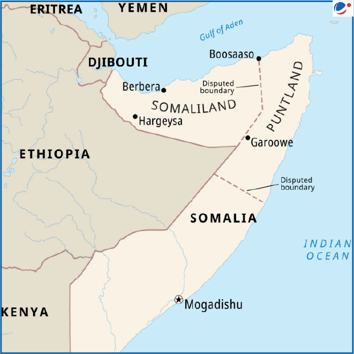 - इतिहास: केंद्र सरकार के पतन और वर्षों के गृहयुद्ध के बाद, यह 1991 में सोमालिया से अलग हो गया था। तब से, यह एक 'वास्तविक राज्य' (de facto state) के रूप में अस्तित्वमान है। इसकी अपनी निर्वाचित सरकार है।