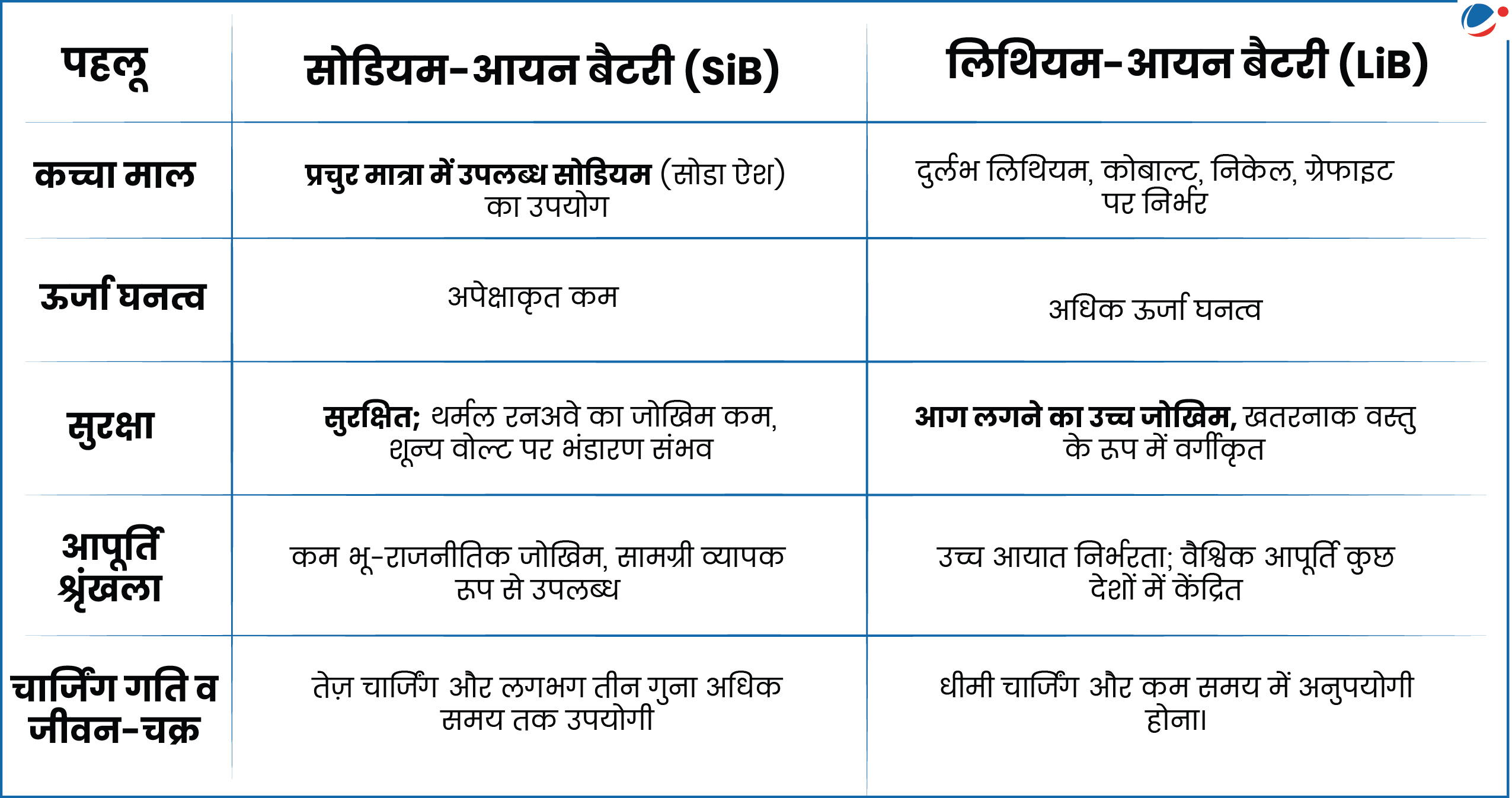 - इसी को देखते हुए भारत लिथियम-आयन तकनीक पर निर्भरता कम करने और ऊर्जा सुरक्षा सुनिश्चित करने के लिए बैटरी से संबद्ध अपनी रणनीति पर पुनर्विचार कर रहा है।
