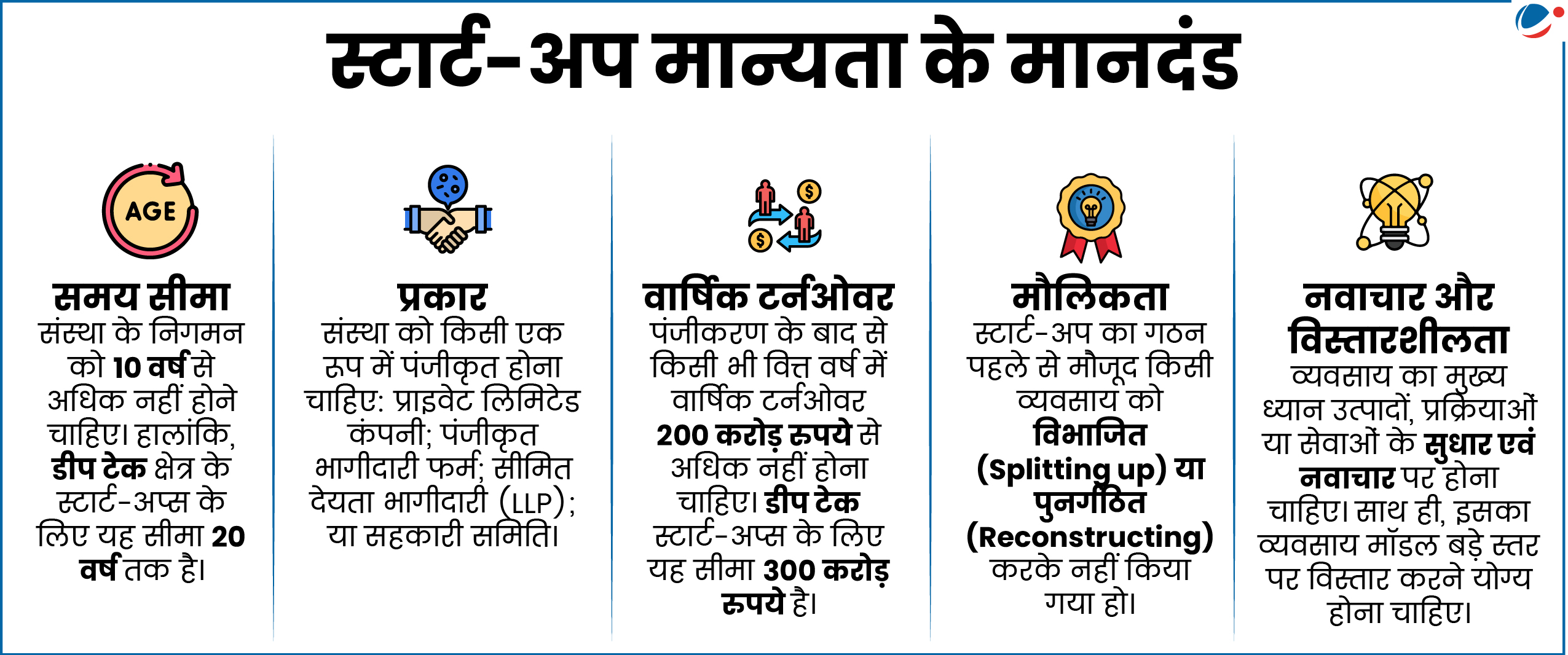 - मान्यता प्राप्त स्टार्ट-अप्स: ऐसे स्टार्ट-अप्स जिन्हें उद्योग संवर्धन और आंतरिक व्यापार विभाग (DPIIT) द्वारा समय-समय पर अधिसूचित पात्रता मानदंडों के आधार पर आधिकारिक मान्यता दी गई है।