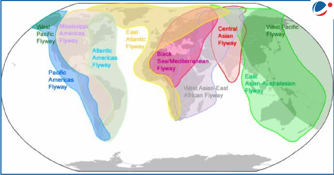 - यह जलपक्षियों के कई महत्वपूर्ण प्रवासन मार्गों का एक समूह है। यह लगभग 605 प्रवासी पक्षी प्रजातियों का पर्यावास क्षेत्र है।