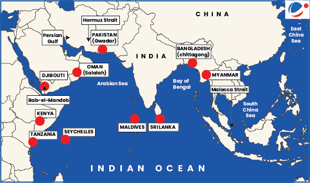 - हिंद महासागर क्षेत्र के प्रमुख जलडमरूमध्य: