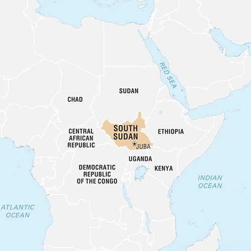 - पड़ोसी देश: उत्तर में सूडान; पूर्व में इथियोपिया; दक्षिण में केन्या, युगांडा, डेमोक्रेटिक रिपब्लिक ऑफ कांगो; और पश्चिम में मध्य अफ्रीकी गणराज्य।