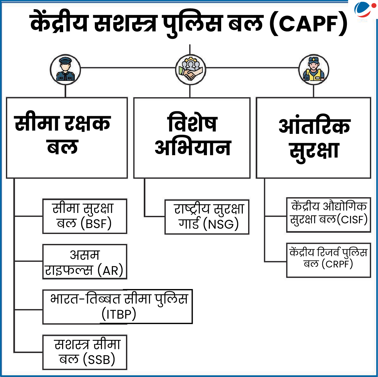 - प्रतिनियुक्ति द्वारा भरे जाने वाले पद: CAPFs में निम्नलिखित पद IPS अधिकारियों की प्रतिनियुक्ति से भरे जाएंगे: