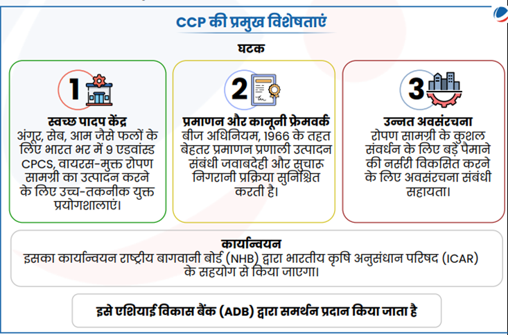 • लाभार्थी: किसान, नर्सरी (सुव्यवस्थित प्रमाणन प्रक्रियाएं और अवसंरचना संबंधी समर्थन), उपभोक्ता आदि।