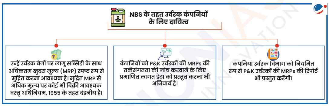 • IMC की सिफारिश के आधार पर NBS  के लिए प्रत्येक पोषक तत्व अर्थात 'N', 'P', 'K' और 'S' पर वार्षिक भुगतान किया जाता है।