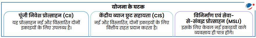 • औद्योगिक विस्तार को समर्थन देने तथा विनिर्माण और सेवा क्षेत्रकों में परिचालन को सुचारू बनाने के लिए प्रोत्साहन प्रदान करना।
