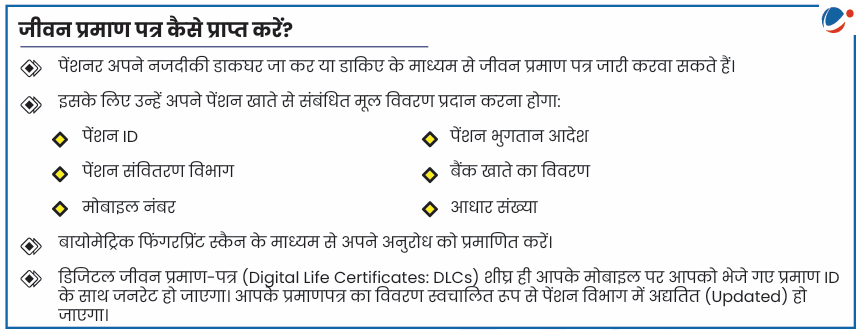 • इसका उद्देश्य पेंशन की निरंतरता सुनिश्चित करने के लिए पेंशन भोगियों को प्रत्येक वर्ष नवंबर में एक कागजी जीवन प्रमाण-पत्र जमा करने की आवश्यकता को समाप्त करना है।