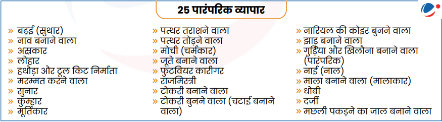 • योजना के उद्देश्य: इसका उद्देश्य पारंपरिक कारीगरों और शिल्पकारों को समग्र समर्थन प्रदान करना है।