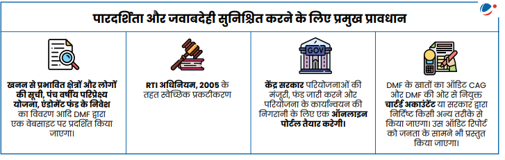 • जवाबदेही: DMFs के खातों की वार्षिक लेखा परीक्षा की जाती है।
