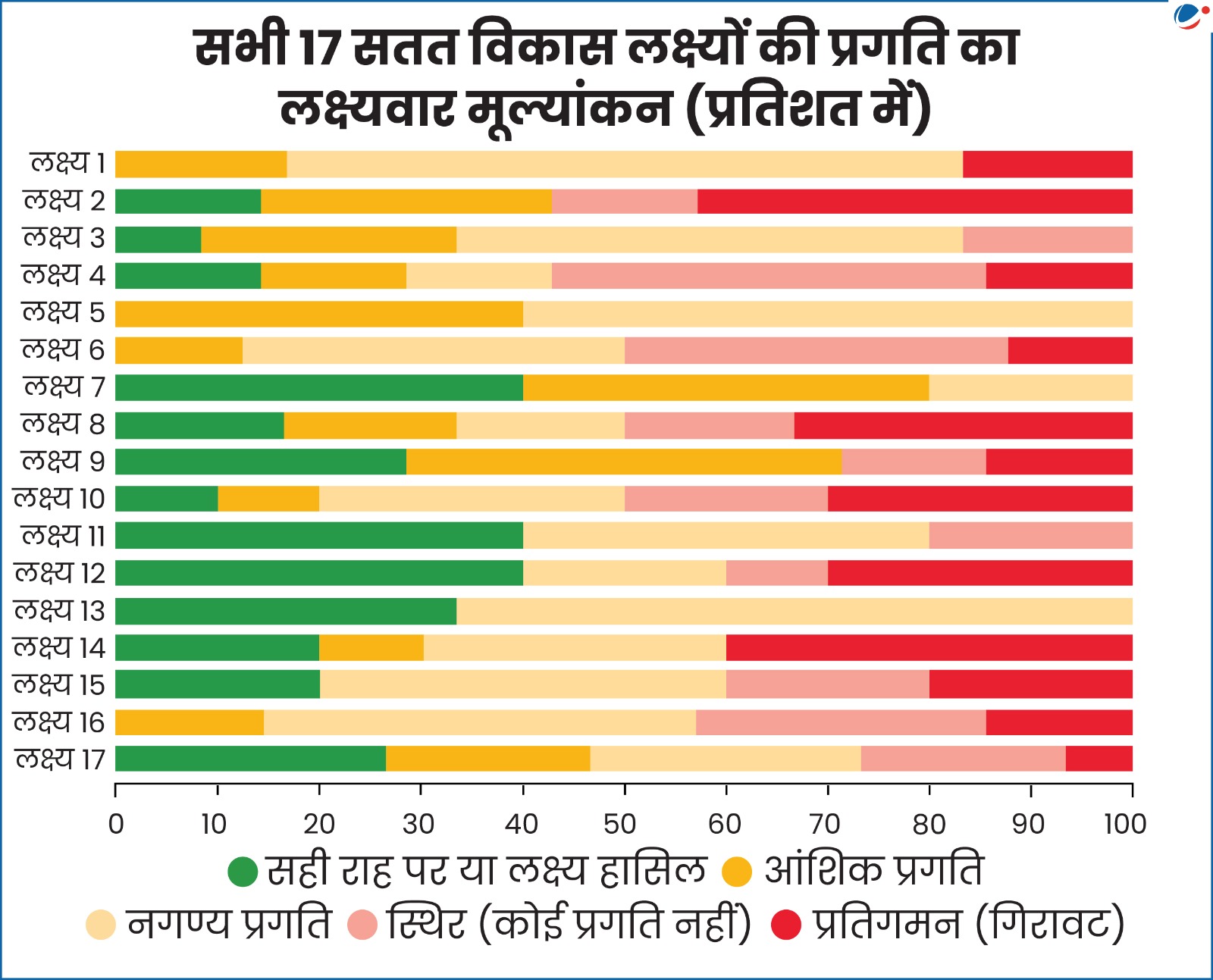 2.2. किन सतत विकास लक्ष्यों (SDGs) में सबसे कम प्रगति हुई या यहाँ तक कि गिरावट (reversal) देखी गई है?