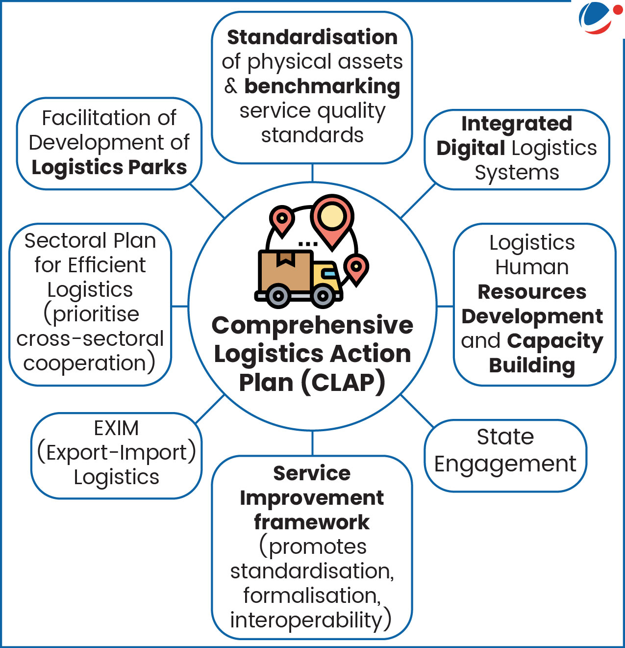 • Implementation through Comprehensive Logistics Action Plan (CLAP): It divided into 8 key action areas (See Infographic).