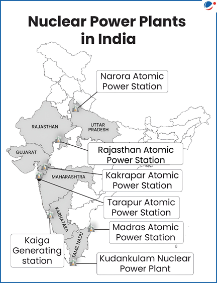 - India currently has 24 reactors across 7 power plants with installed nuclear energy capacity of 8180 MW (January 30, 2025).